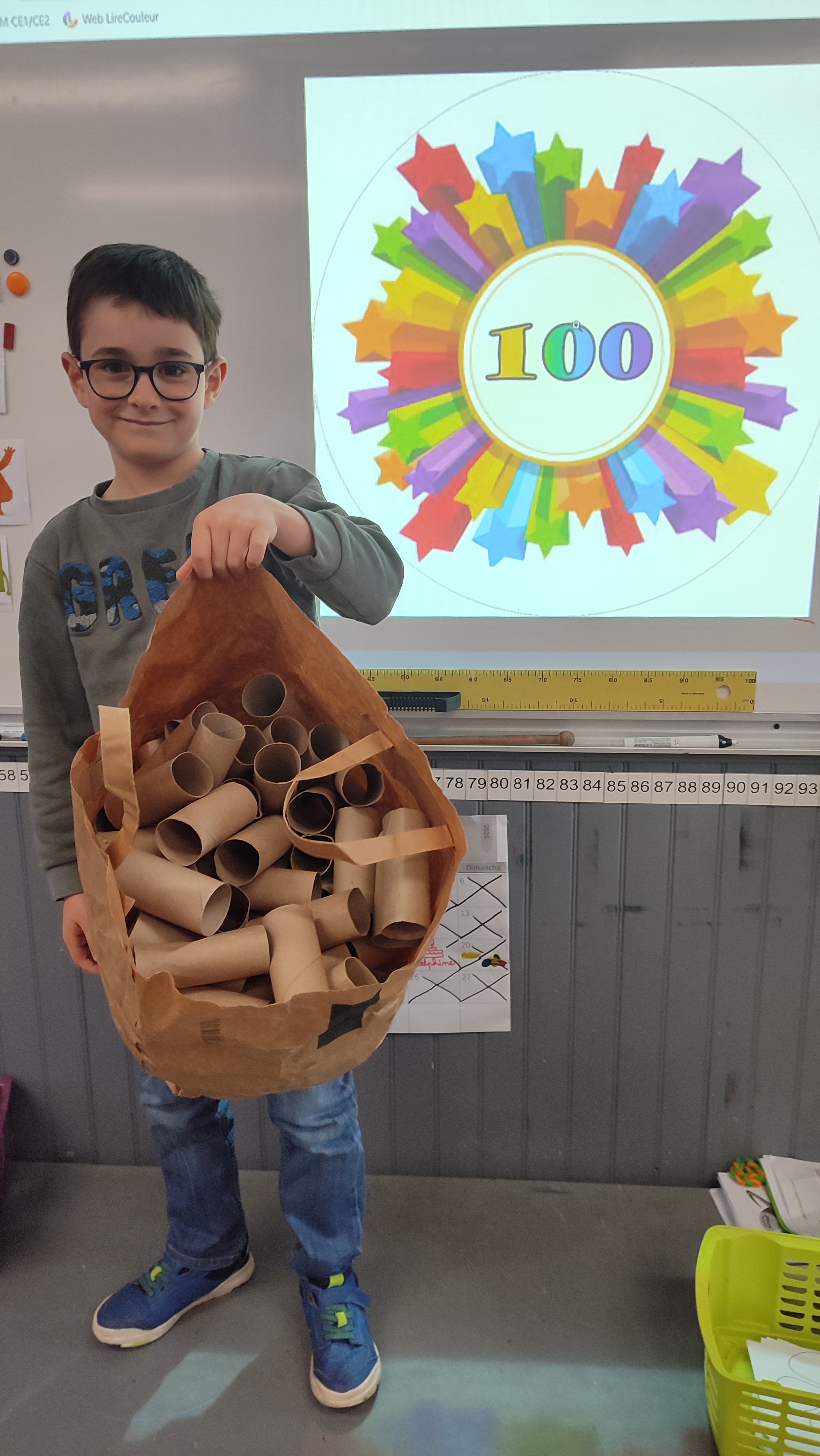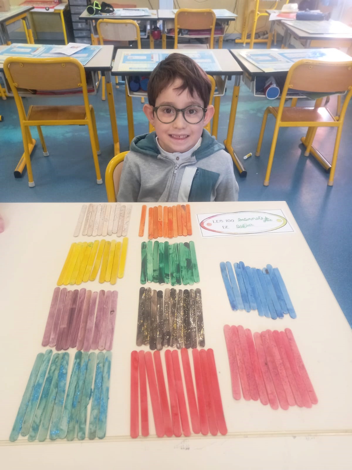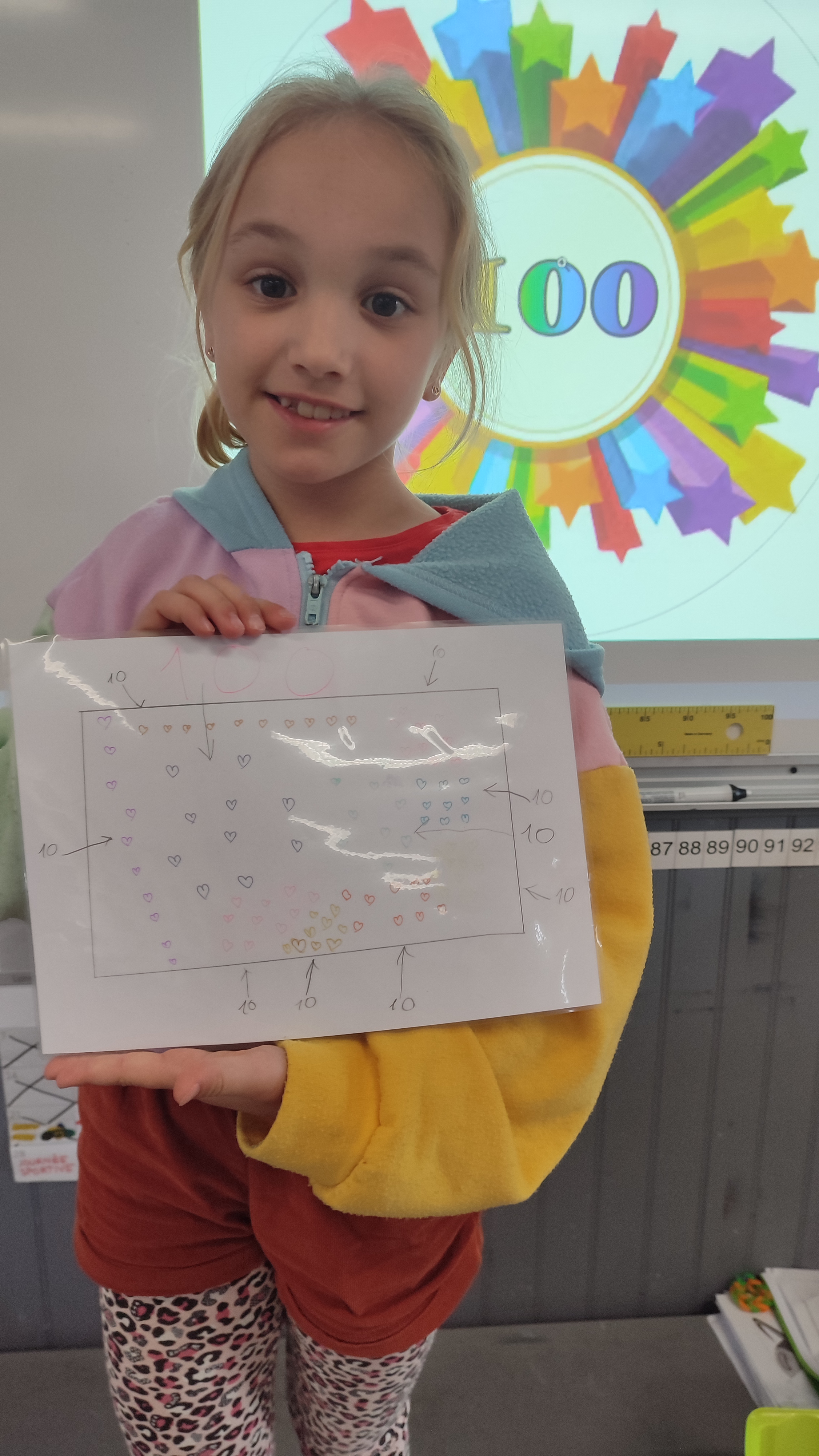 Les CP, CE1 et CE2 ont fêté cette journée spéciale en réalisant plein d’activités autour du nombre 100: