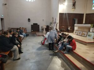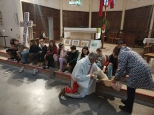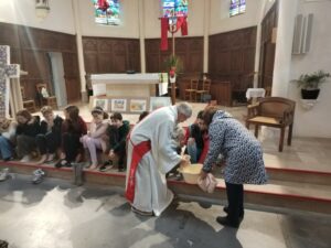 Les élèves du CP au CM2 se sont rendus à l’église par classe pour chanter et participer au “lavement des pieds”.